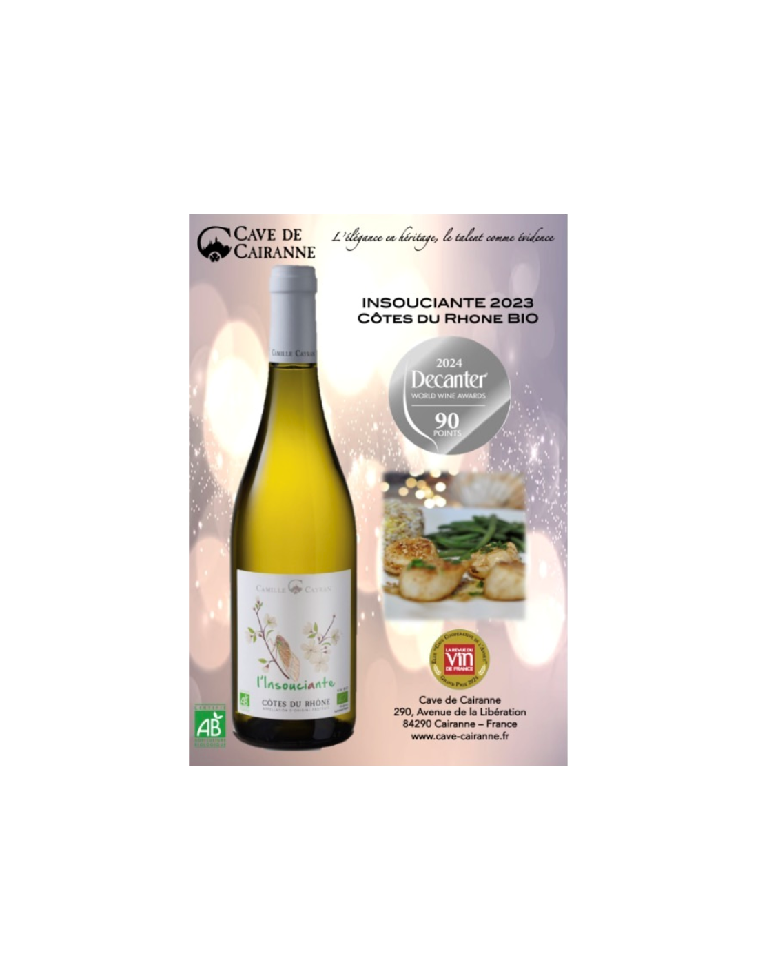 Côtes du Rhône Villages L' Insouciante Camille BIO Cayran Blanc