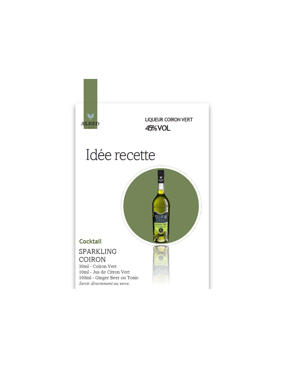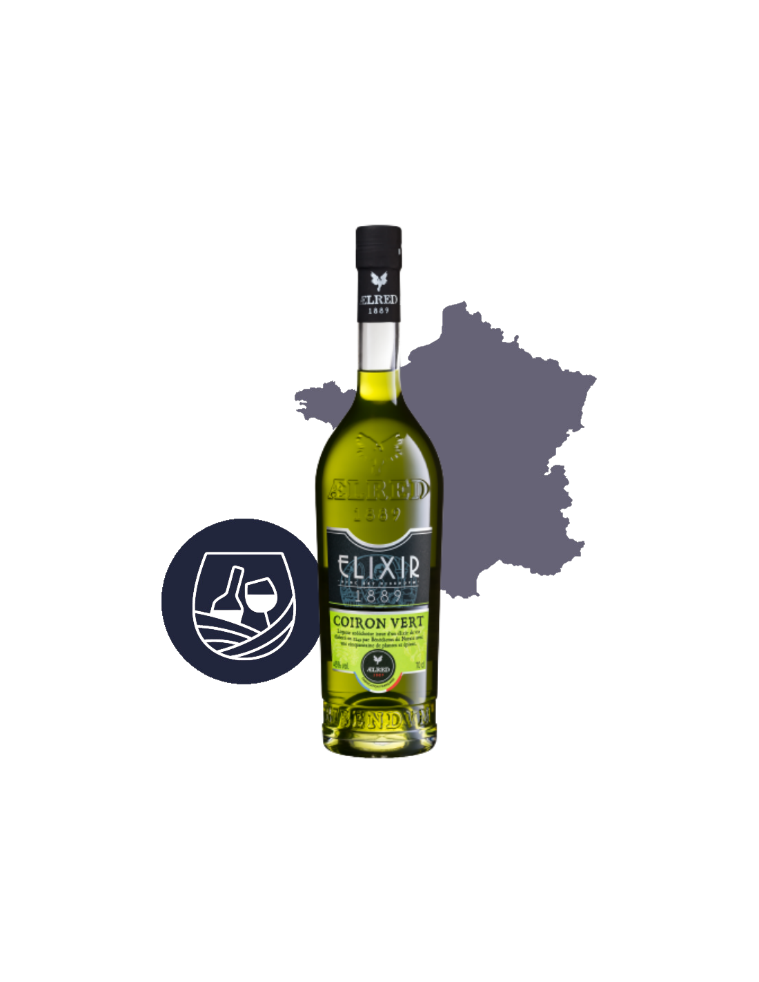 L'Elixir du Coiron vert Ælred est élaboré grâce à notre héritage de l’art de la distillation. Cette liqueur est un subtil assemblage entre un alcoolat et un macérat de plantes tous deux élaborés par notre Maître Distillateur. La recette contient plus d’une trentaine de plantes, fleurs et épices. Notre liqueur vieillit en fût dans notre cave avant la mise en bouteille. A consommer sec sur glace, ou en cocktail.